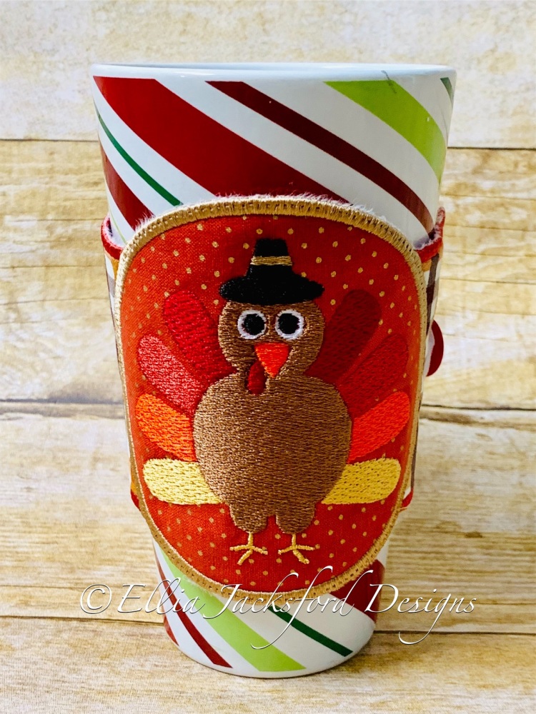 Add a little Thanksgiving to your coffee with this colorful turkey coffee sleeve embroidery design. But don't let the name fool you!! Sleeves don't have to be used just for coffee. Wrap any beverage with this adorable design. What's even better? Your design is made entirely in the hoop with only a button to sew on to finish!!